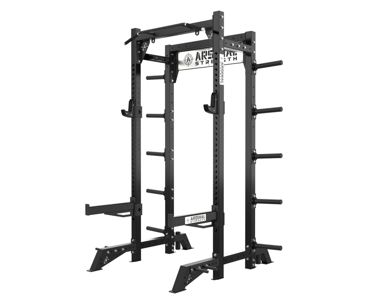 Série Arsenal Strength Alpha 11 Gauge Racks se skládá z vertikálních sloupků 3×3 palce o síle 11 gauge. Mezi klíčové vlastnosti patří nastavení výšky v krocích po 2 palcích (5,08 cm), přizpůsobitelné standardní úložné místo na osu, držáky pro odporové pásy a víceúchopové příčky pro shyby. Série je dostupná ve variantách Half Rack, Power Rack a Double Half Rack.
